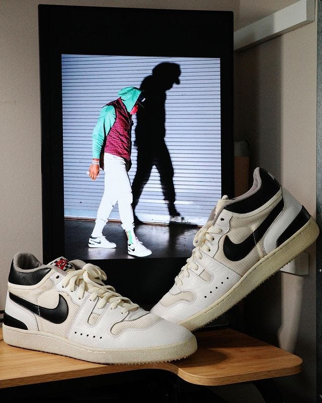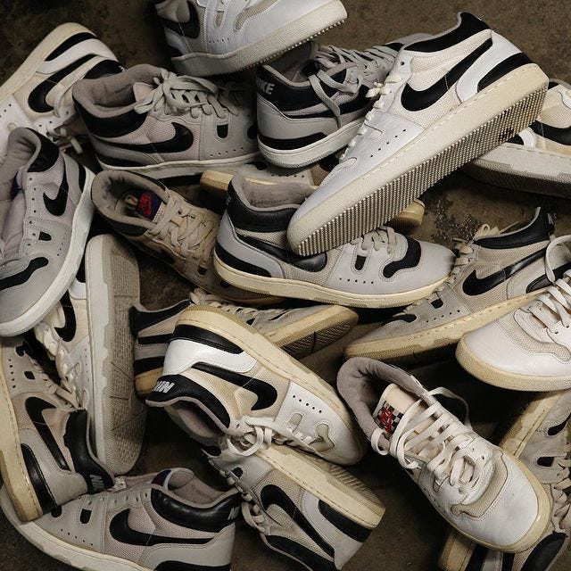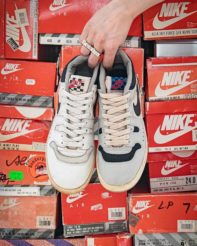 Il cortocircuito di qui sopra è ben più evidente con i modelli che realmente meritano una rétro, un esempio perfetto è la Mac Attack di cui ho parlato ampiamente. Chi la conosce la apprezza, non ha bisogno di particolari infiocchettamenti. Ma chi non ha idea di cosa sia penserà sia la scarpa di LeBron o Travis nel migliore dei casi, o una qualunque scarpa grigia che sembra una New Balance 550 (sentito il ragionamento con queste mie orecchie) nel peggiore. Senza contesto non si vende. La grigia, attesa quarant’anni e sognata da generazioni di collezionisti, ha fatto polvere finché non è arrivata l’orda dei delusi dalla release delle Travis Scott, pronti ad accontentarsi di qualcosa di simile. La bianca, la seconda colorway originale, è attualmente 50% off in quasi tutti i retailer che l’hanno ricevuta e lì rimane. Dando il giusto contesto all’uscita ne avresti venduta qualcuna in più? Per fortuna pianificare il marketing di Nike non è tra le mie responsabilità, ma vedendo il successo riscosso in altri casi mi viene da pensare di sì.